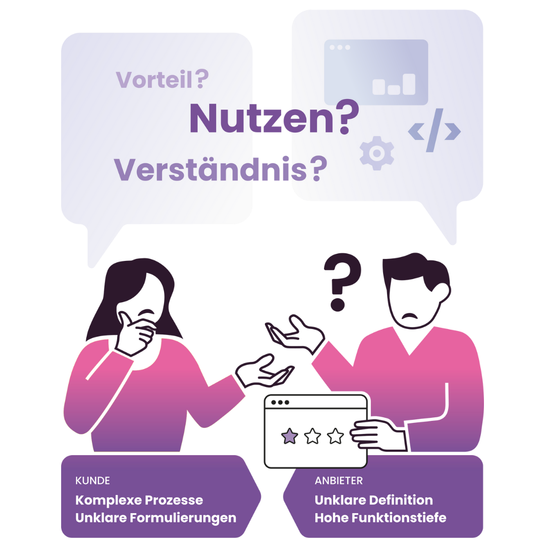 Komplexe Prozesse treffen auf lange Wunsch- und Anbieterlisten – aber ohne Prioritäten. Anbieter präsentieren Funktionsfülle, während der eigentliche Nutzen für Ihr Unternehmen unklar bleibt.